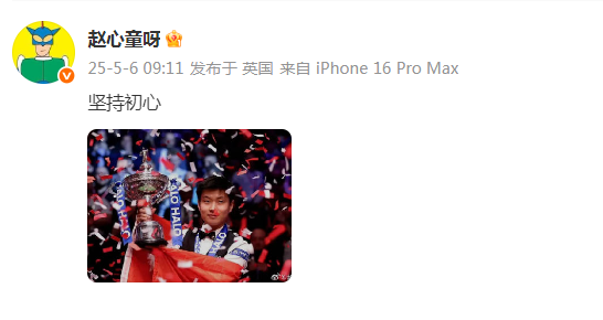 据央视新闻客户端消息,北京时间5月6日,斯诺克世锦赛决赛第四阶段比赛结束,中国选手赵心童总比分18比12战胜马克・威廉姆斯夺得冠军,成为中国首位,也是亚洲首位斯诺克世锦赛冠军,创造了斯诺克运动的历史。